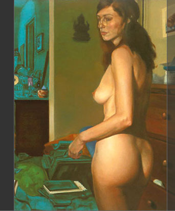 I often use deconstructed depictions of a room – a white cube – as a starting point for my imagery. I transform the room by using projections of various places or figures on the walls, in essence creating a virtual extension of the space. By combining layers of images, I explore how each painting can be transformed to create an experience that is multilayered and time-based for the viewer. The voyeuristic perspective is heightened by the paintings artificial construction and we become conscious of our physical and emotional presence. Each work becomes a sanctuary to contemplate our relationship to nature and ourselves.